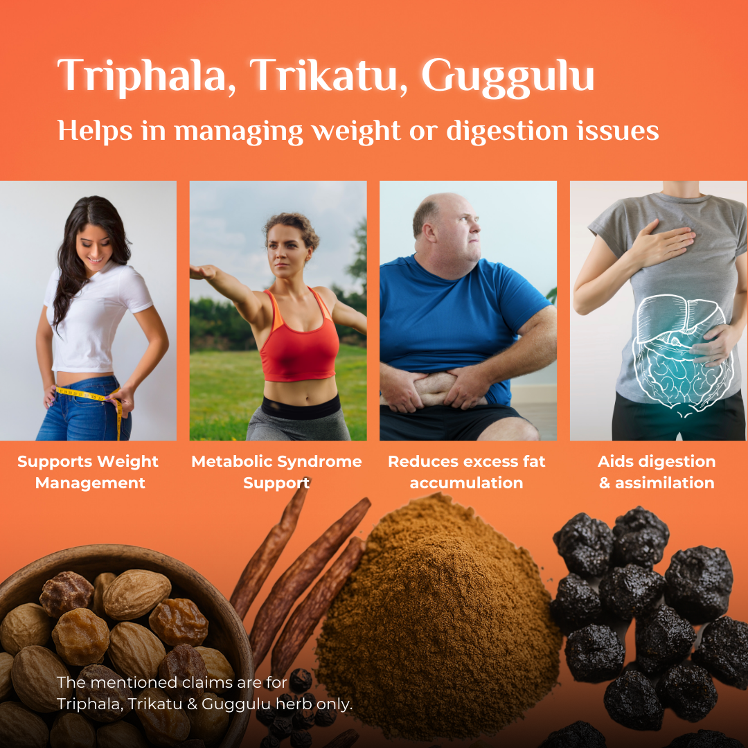 • Triphala & Trikatu Support: Traditionally referenced for maintaining healthy digestion, bowel movement, and balancing Pitta–Kapha doshas.