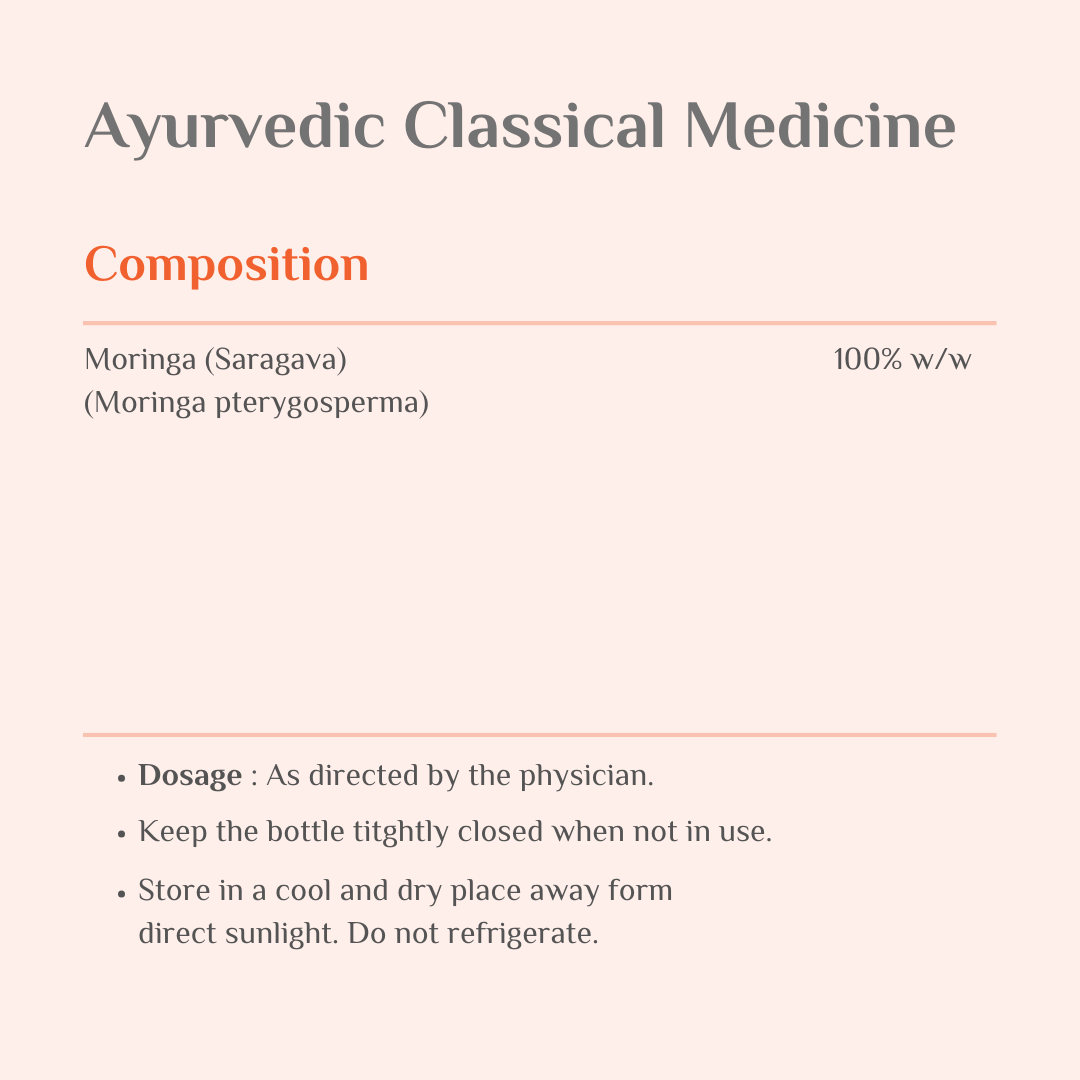 Shivam Ayurveda Moringa Powder is a natural, plant-based powder made from carefully selected moringa leaves and gently processed to retain purity and quality. Traditionally valued for both internal and external use, this versatile powder fits easily into daily wellness and beauty routines. It can be mixed into drinks like warm water, smoothies, juices, or used to create nourishing face and hair masks at home. Hygienically packed and completely vegan, this 100 gm pack is ideal for those seeking a simple, natural, and clean lifestyle choice.