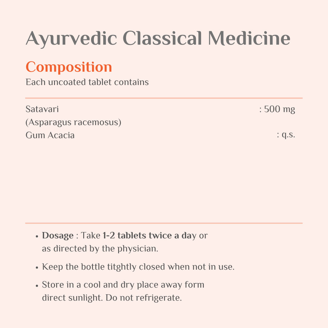 Shivam Ayurveda Shatavari Tablets contain 500mg of Shatavari (Asparagus racemosus), a revered Ayurvedic herb traditionally used to support women’s wellness. Known in Ayurvedic texts for its balancing and rejuvenating properties, Shatavari is often incorporated into daily wellness routines for general vitality, hormonal balance, and overall well-being.